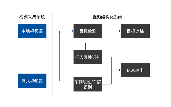 视频结构化系统由采集系统、结构化信息分析系统组成,如下图所示:
